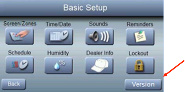 Press the Version button on the basic setup screen