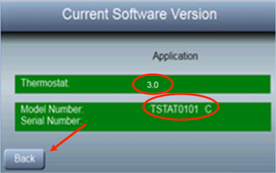 To determine the thermostat Serial Number and Software version: